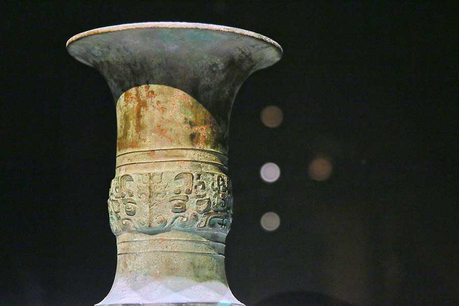 Oracle bones, bronze wares and jade objects dating back to late Shang (c.16th century-11th century BC) and Zhou (c.11th century-256 BC) dynasties are on show at the National Museum of China through Dec 22. [Photo by Jiang Dong/China Daily]