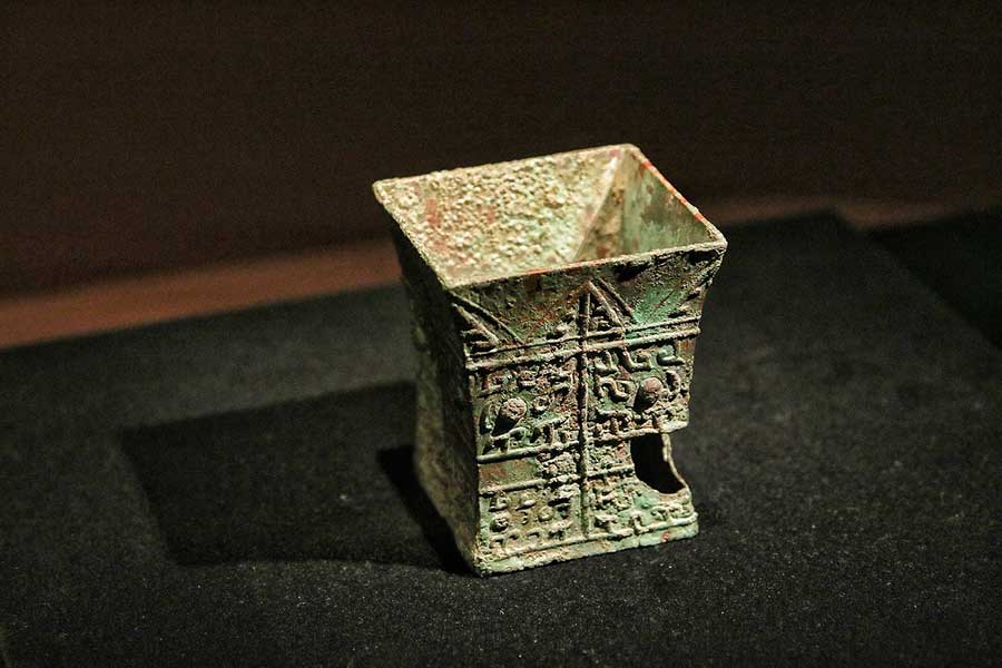 Oracle bones, bronze wares and jade objects dating back to late Shang (c.16th century-11th century BC) and Zhou (c.11th century-256 BC) dynasties are on show at the National Museum of China through Dec 22. [Photo by Jiang Dong/China Daily]