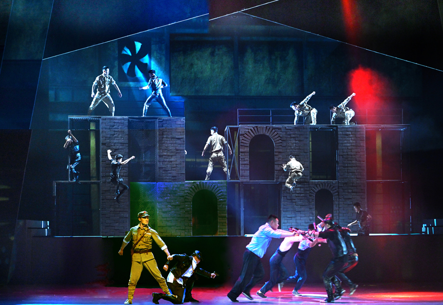 A fight scene in the battle to liberate Shanghai from the new circus production Dawn of Shanghai, which opened the 21st China Shanghai International Arts Festival on Oct 18. [Photo provided to China Daily]