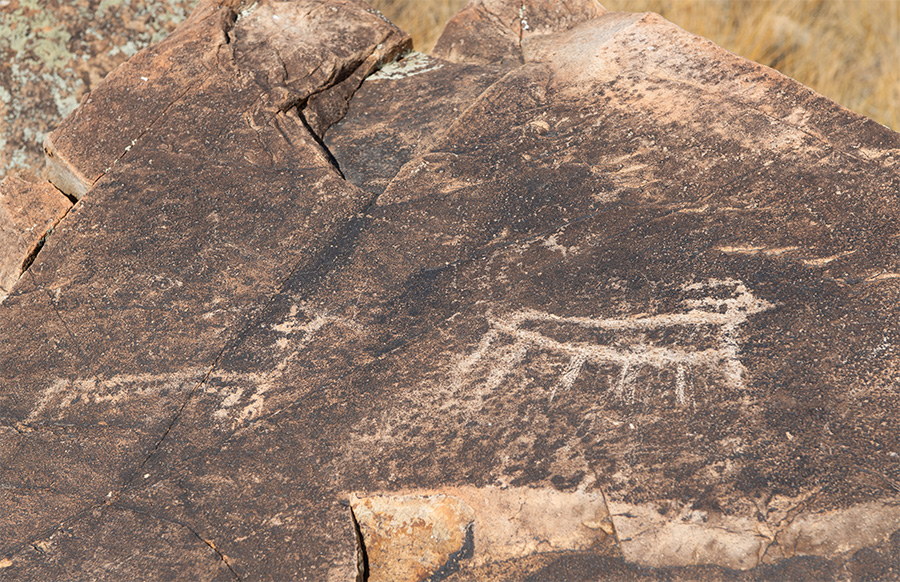 The themes of the rock paintings include the hunting activities of the nomadic nationalities. Among the rock paintings, the most common and most finely drawn ones are pictures of hunters or animals like goats, sheep, hounds, horses, wolf and even some species that were already extinct.