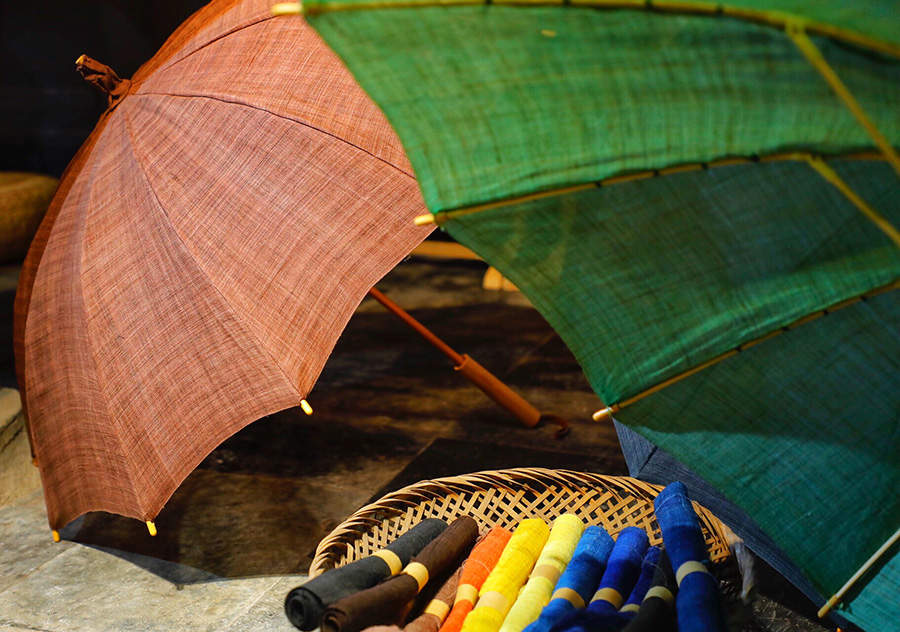 Umbrellas made of xiabu. [Photo by Jiang Dong/China Daily]