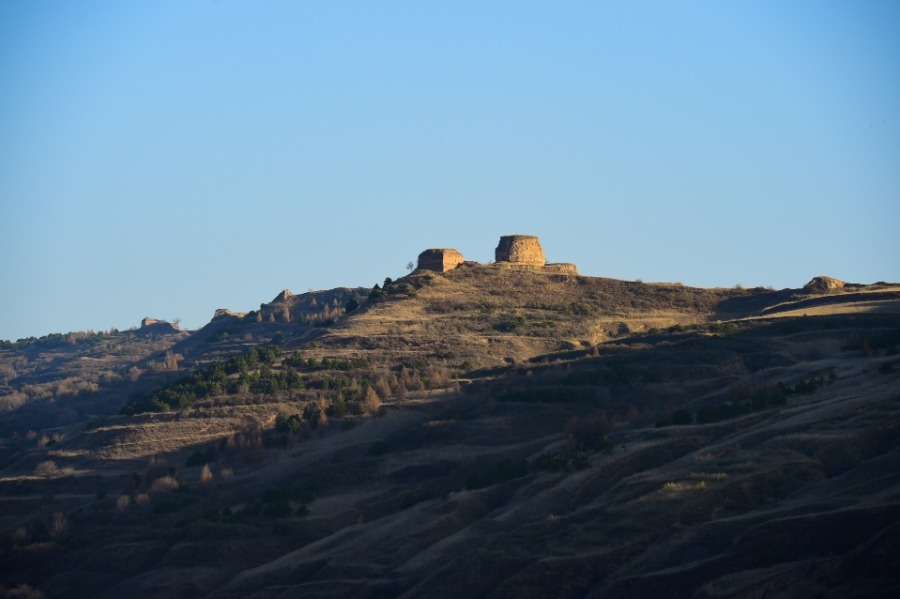 Photo taken on Oct 31, 2019 shows beacon towers of a section of the Great Wall built in Ming dynasty (1368-1644) in Qingshuihe county, Hohhot, capital of North China's Inner Mongolia autonomous region.[Photo/Xinhua]