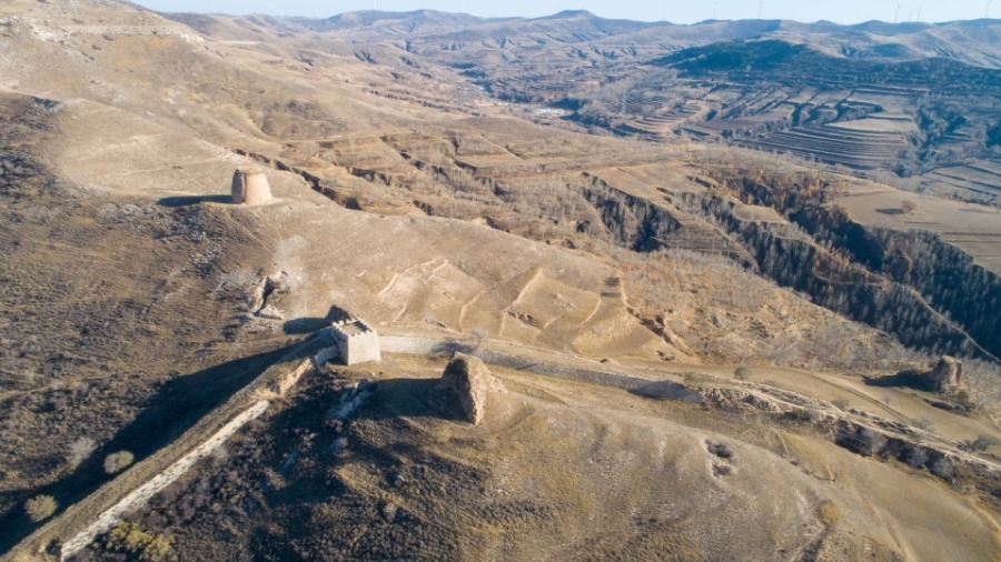 Photo taken on Oct 31, 2019 shows beacon towers of a section of the Great Wall built in Ming dynasty (1368-1644) in Qingshuihe county, Hohhot, capital of North China's Inner Mongolia autonomous region.[Photo/Xinhua]