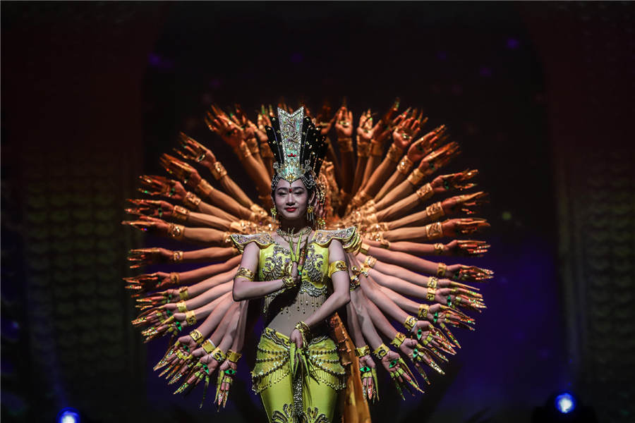Artists from China Disabled People's Performing Art Troupe perform the "Thousand-hand Bodhisattva" group dance during the show "My Dream" in Sao Paulo, Brazil, Nov 6, 2019. [Photo/Xinhua]