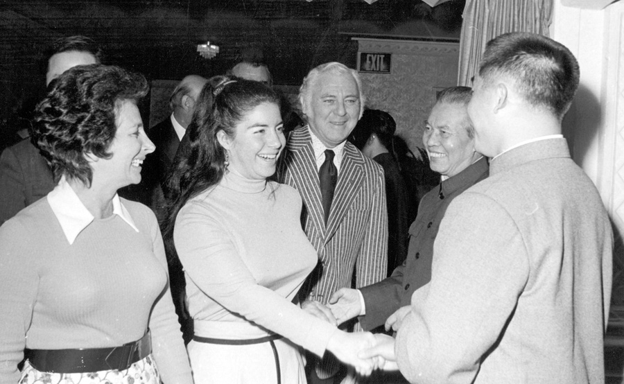 During the Chinese Ping-Pong Team's visit to New York in 1972, Jan Berris (second left) and her parents meeting table tennis players Zhuang Zedong and Huang Hua [Photo provided to China Daily] |
