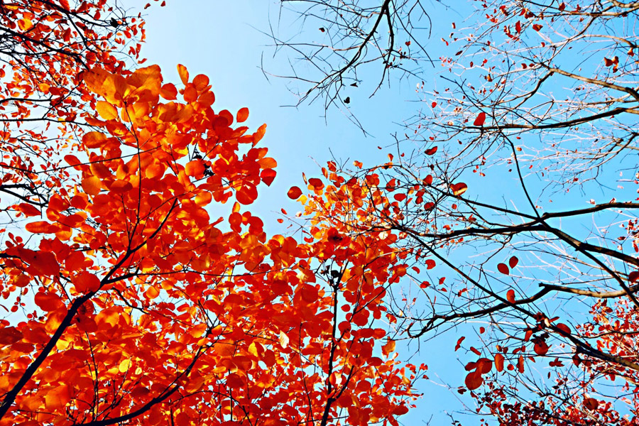 The vibrant leaves in Beigong National Forest Park in Beijing, Nov 10, 2019. [Photo by Jiang Yijing/China Daily]