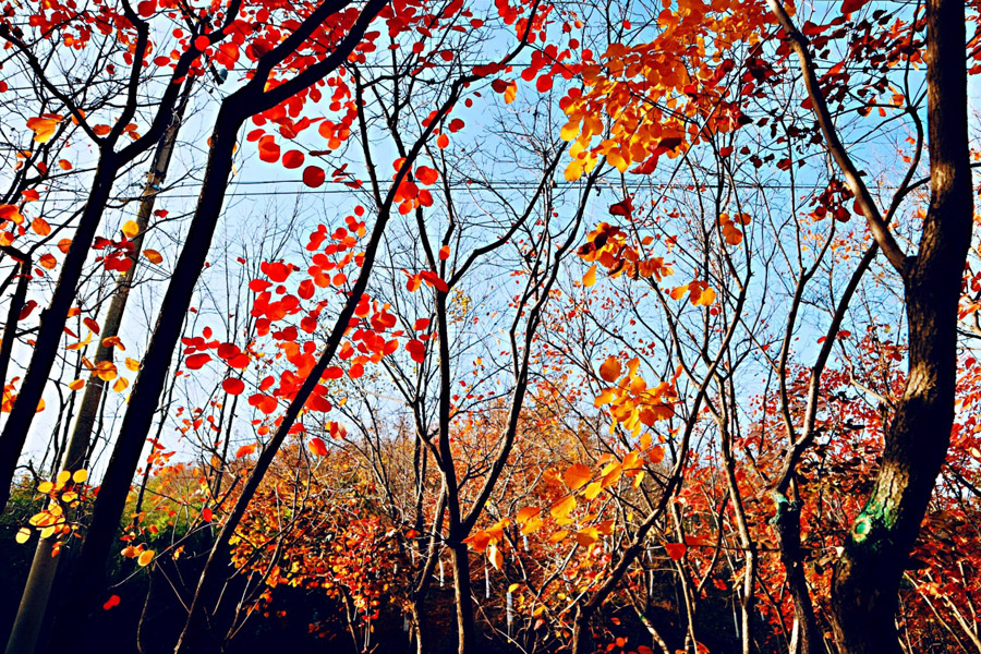 Trees in Beigong National Forest Park, Beijing burst to life on Nov 10, 2019. [Photo by Jiang Yijing/China Daily]