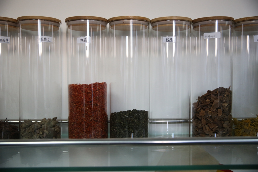 The natural dye in the analysis room is the standard sample for the analysis and detection of cultural relics. [Photo by Jiang Dong/China Daily]