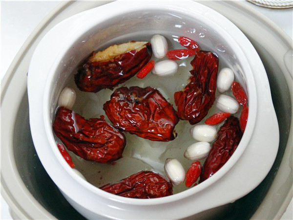 Bind the stems together and add to the simmering stock. Add the jujubes to the soup.