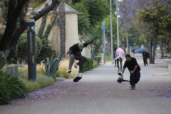 Director Sun Yu filming skateboarders in Los Angeles.[Photo provided to China Daily] |