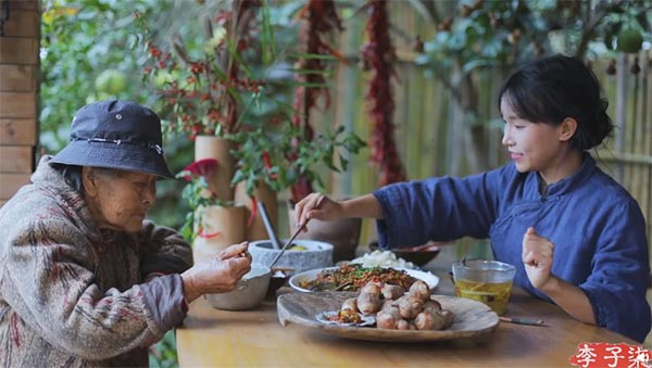 Scenes of the young vlogger picking seasonal ingredients from her own garden (and sometimes in the mountains and rivers near her residence) and turning them into luscious dishes on her wood-fired wok dominate her videos. A warm bowl of soup for the winter, a lighter plate of noodles for the summer. Li emphasizes the seasons in her cooking, as China's traditional 24 Solar Terms also do, and makes food suitable for the particular climate.