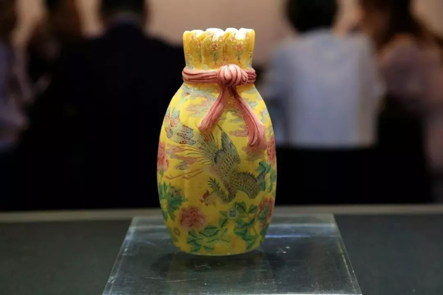 A yellow enamel bottle with a knot and patterns from the Qing Dynasty (1644-1911). [Photo/ artron.net]