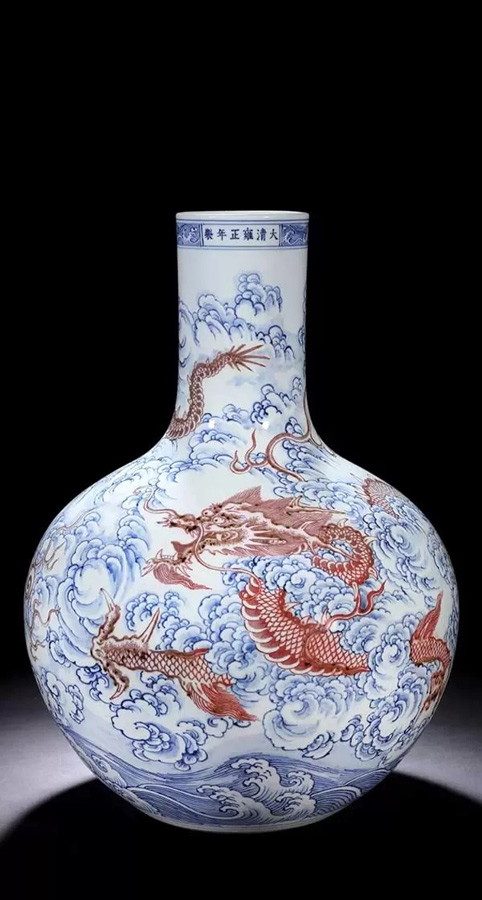 7, A globular vase with a cylindrical neck and dragon patterns from the Qing Dynasty (1644-1911)
