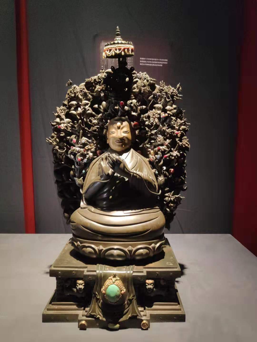 A statue portrays the Buddhist guru Tsongkhapa, which was made in a workshop at the Forbidden City in 1781.[Photo provided to China Daily] |