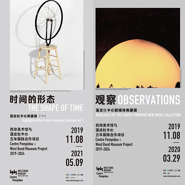 Posters for the two exhibitions The Shape of Time and Observations, held at the West Bund Museum in Shanghai. [Photo provided to chiadaily.com.cn]