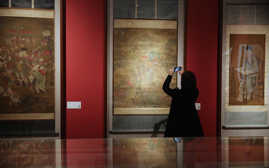 A Qing Dynasty painting inspired by Dream of the Red Chamber on show at A Literary Peak of Eternity. [Photo by Jiang Dong/China Daily]
