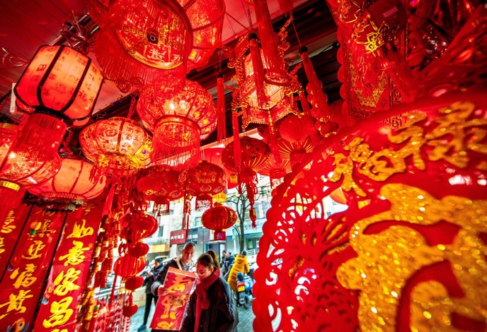 People select the Spring Festival decorations at a shop in Lishui, East China's Zhejiang province, Jan 25, 2019. The Spring Festival, or the Chinese Lunar New Year, falls on Feb 5 this year.
