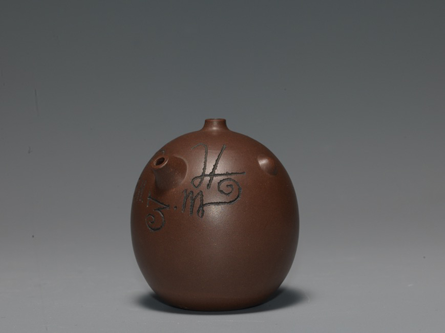 A teapot based on the collaboration between Han Meilin and Wang Yinxian, a zisha artisan of Jiangsu province. [Photo provided to China Daily]