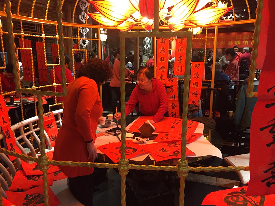 Locals participate in traditional Chinese New Year activities at the Sishi Tongtang restaurant in Beijing. [Photo provided to China Daily]