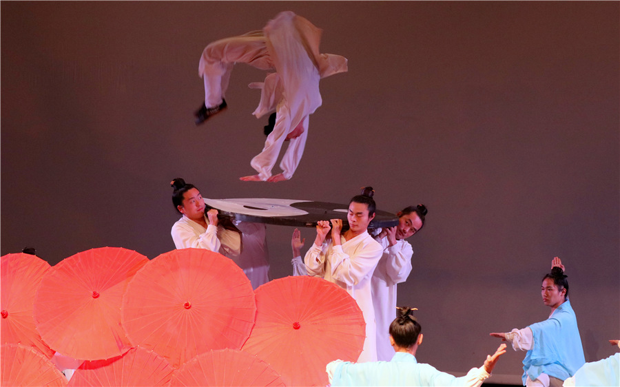 Hubei Wudang Martial Arts Troupe performs onstage during the reception in Tel Aviv. [Photo by Mao Li for Chinaculture.org]