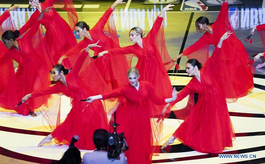 Dancers perform during the Chinese culture night hosted by Brooklyn Nets at the team's home arena Barclays Center in New York City, the United States, Jan. 29, 2020. [Photo/Xinhua]
