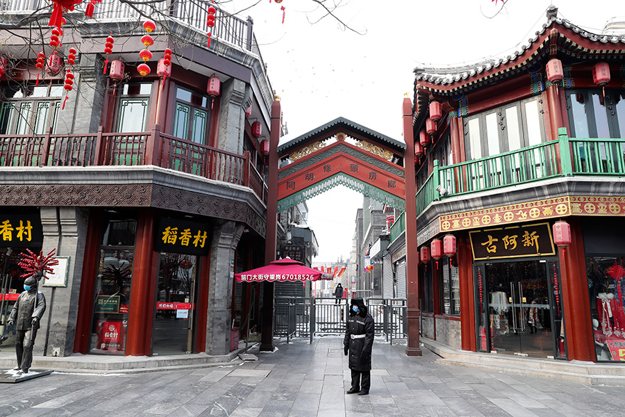 Few people are seen at Dashilar, Qianmen Street. [Photo by Feng Yongbin/China Daily]