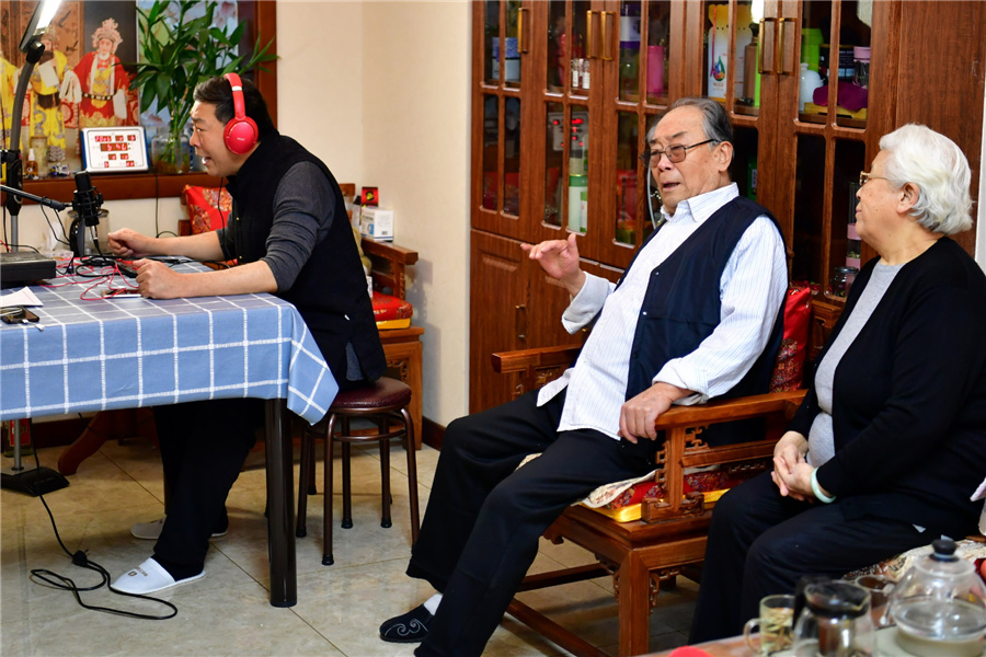 Wu Zhong, center, Wu Lingyun's father, listens to Wu Lingyun's performance. [Photo/Xinhua]