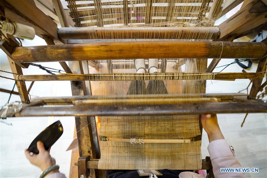 A woman makes Rongchang Grass Linen, also called Rongchang Xiabu, at a workshop in Rongchang district of Chongqing, Southwest China, March 23, 2020. [Photo/Xinhua]