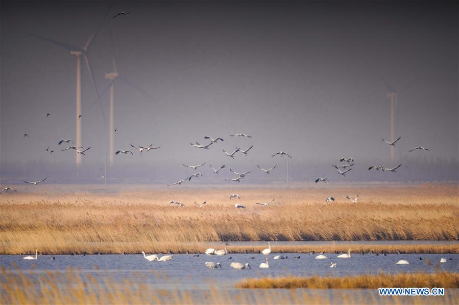 Migrant birds are seen at the wetland in Momoge National Nature Reserve in Zhenlai county, Baicheng city of Northeast China's Jilin province, April 9, 2020. [Photo/Xinhua]