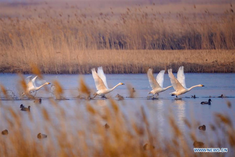 White cranes are seen at the wetland in Momoge National Nature Reserve in Zhenlai county, Baicheng city of Northeast China's Jilin province, April 9, 2020. [Photo/Xinhua]