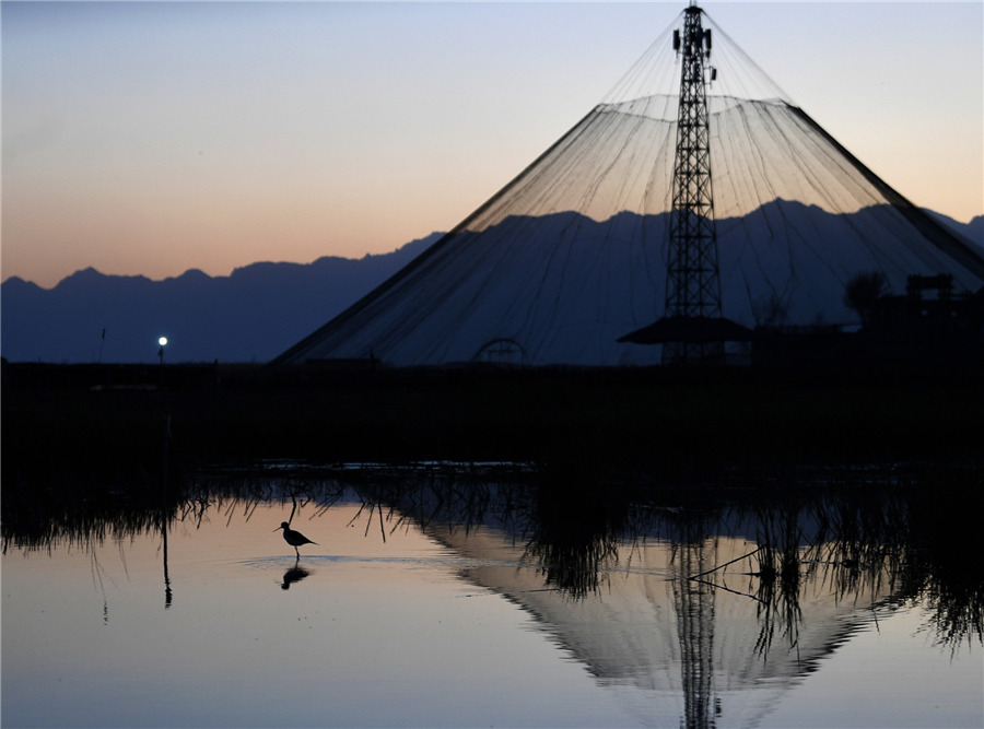 Migratory birds are spotted at the Sand Lake scenic area in Shizuishan, Northwest China's Ningxia Hui autonomous region. From March to October, the region becomes a sanctuary for many species such as sandpipers, herons and pochards. The 9th International Bird Watching Festival will begin during the Labor Day holiday. [Photo/Xinhua]
