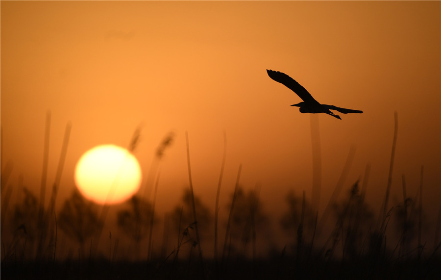 Migratory birds are spotted at the Sand Lake scenic area in Shizuishan, Northwest China's Ningxia Hui autonomous region. From March to October, the region becomes a sanctuary for many species such as sandpipers, herons and pochards. The 9th International Bird Watching Festival will begin during the Labor Day holiday. [Photo/Xinhua]
