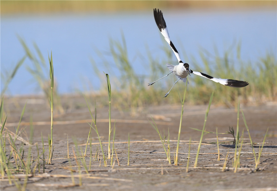 Migratory birds are spotted at the Sand Lake scenic area in Shizuishan, Northwest China's Ningxia Hui autonomous region. From March to October, the region becomes a sanctuary for many species such as sandpipers, herons and pochards. The 9th International Bird Watching Festival will begin during the Labor Day holiday. [Photo/Xinhua]