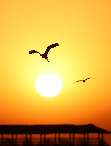 Migratory birds are spotted at the Sand Lake scenic area in Shizuishan, Northwest China's Ningxia Hui autonomous region. From March to October, the region becomes a sanctuary for many species such as sandpipers, herons and pochards. The 9th International Bird Watching Festival will begin during the Labor Day holiday. [Photo/Xinhua]