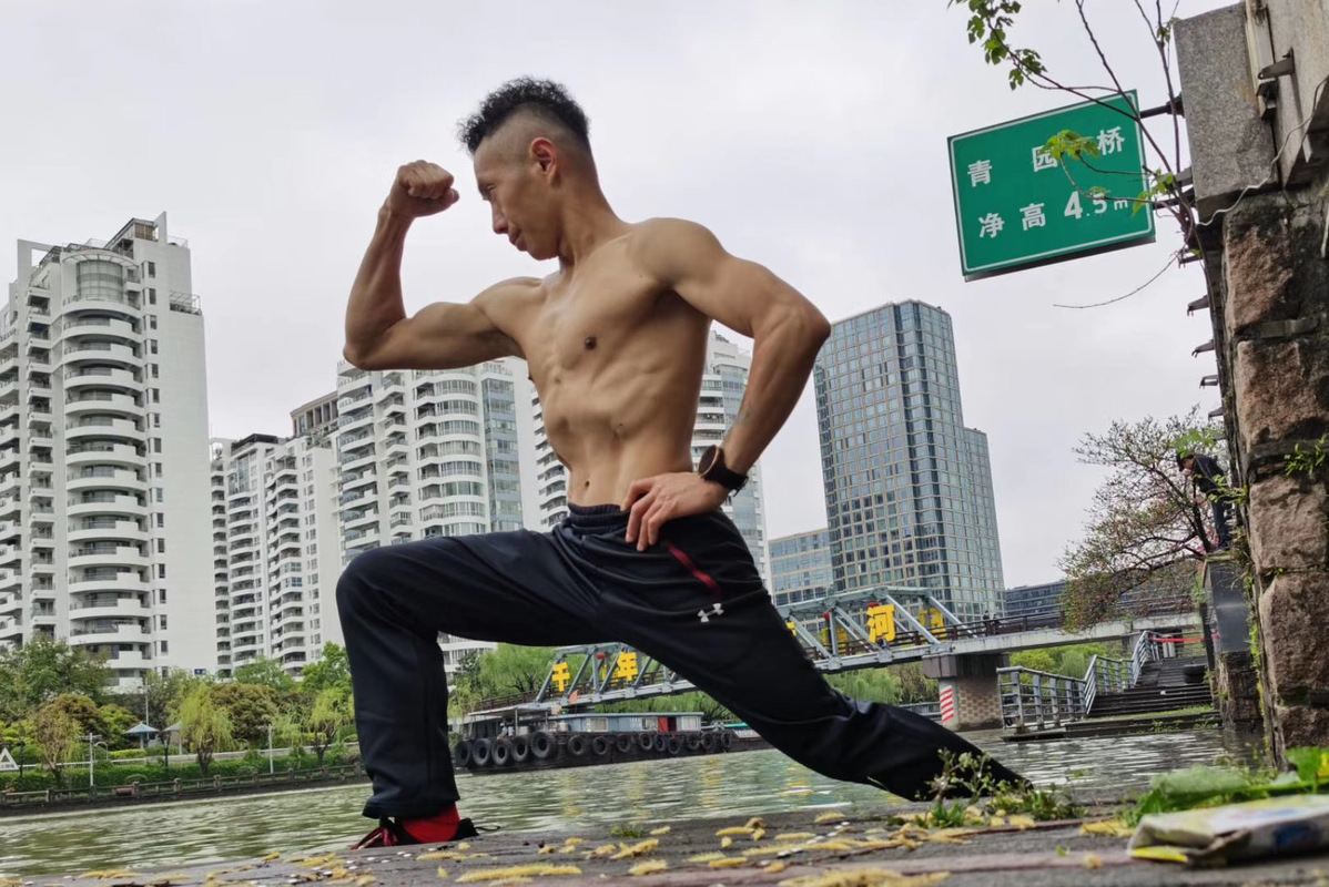 Fan displays his build after a morning exercise. [Photo provided to China Daily] |