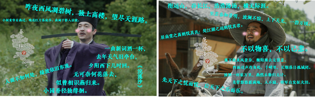 Qing Ping Yue, the drama's title in Chinese, is a common Ci Pai used in Song poetry. Accomplished Song poets who were also important officials -- such as Yan Shu, Fan Zhongyan and Ouyang Xiu -- were featured in the drama, with several scenes dedicated to portraying them reading their own pieces.