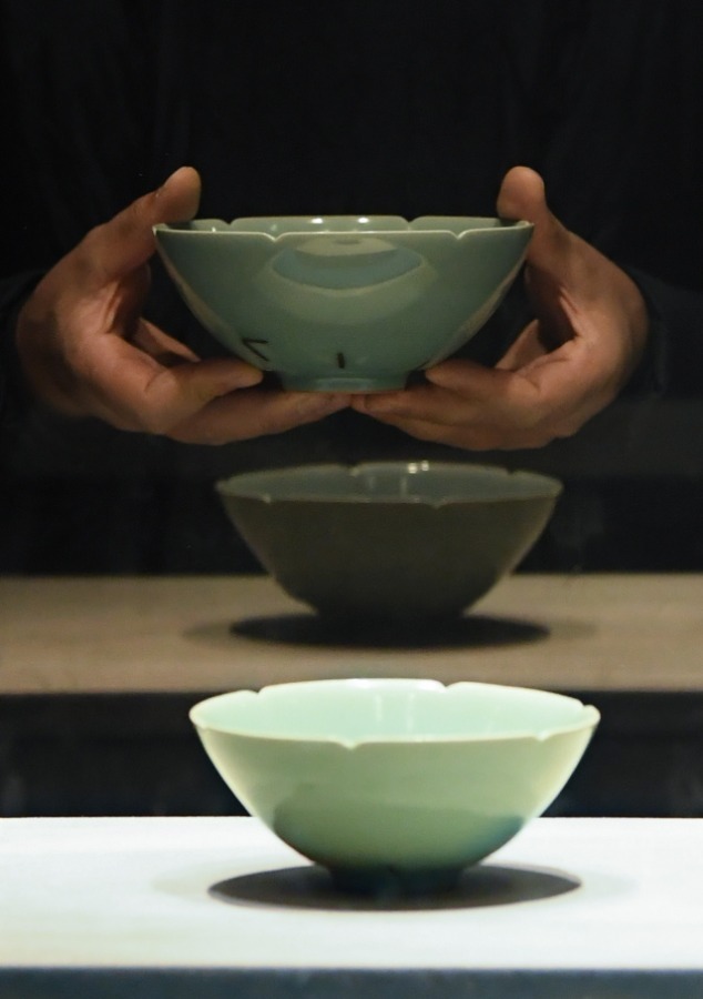 Bakohan is a tea bowl made in Longquan, China, and gifted to Japan during the Southern Song Dynasty (1127-1279). During the era of Ming Dynasty (1368-1644), Bakouhan was found to have cracks and was then sent to China to be fixed. The bowl is now displayed in the Tokyo National Museum.[Photo/Xinhua]