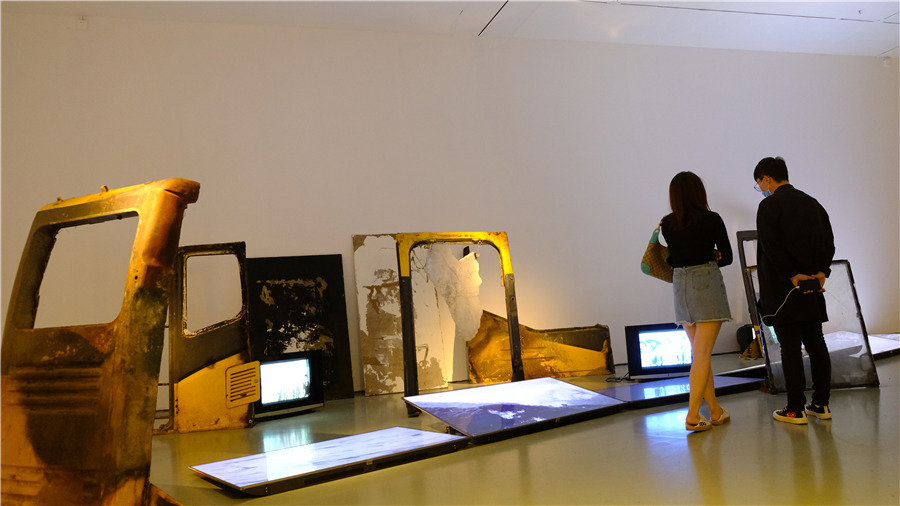 Visitors look at Chinese artist Shang Yang's installation, Remaining Water, at the Today Art Museum in Beijing on May 16, 2020. [Photo by Yang Xiaoyu/chinadaily.com.cn]