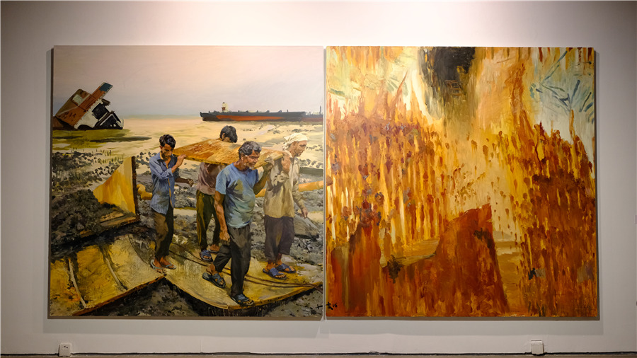 Chinese artist Liu Xiaodong's oil painting, Steel 1, is on display at The 4th Today's Documents – A Stitch in Time, at the Today Art Museum in Beijing on May 16, 2020. [Photo by Yang Xiaoyu/chinadaily.com.cn]