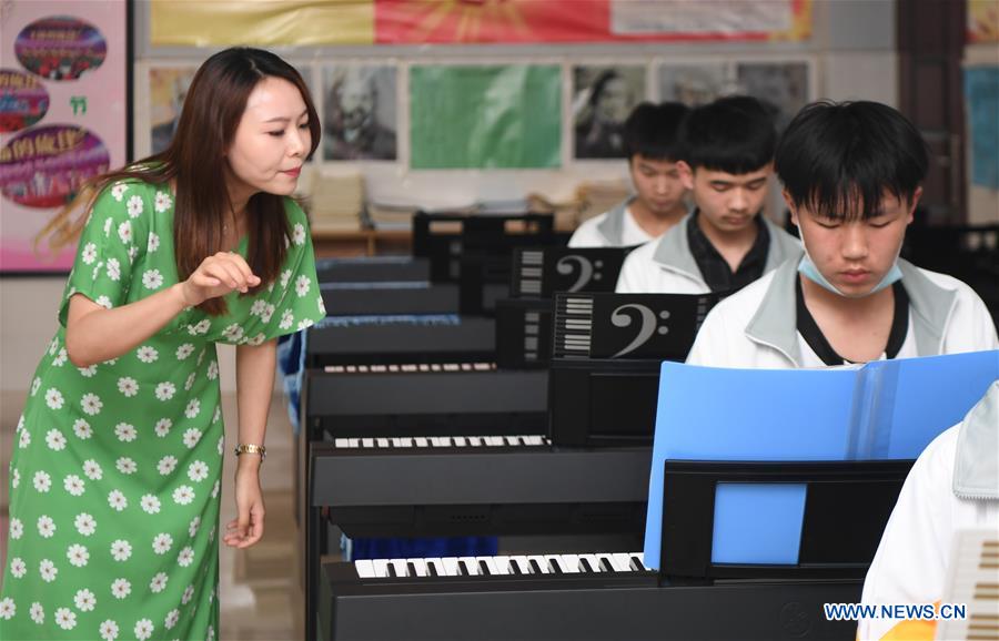 Students practice playing the flutes at the No. 5 Middle School in Wuxi Town of Luxi County in Xiangxi Tujia and Miao autonomous prefecture, Central China's Hunan province, May 22, 2020. The school has set up various art courses free of charge since 2006 to help cultivate rural students' interest in art.[Photo/Xinhua]