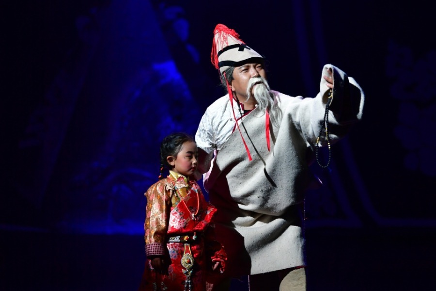 Actors perform a traditional Tibetan musical in Hailuowan theater, Xiahe county, Gannan Tibetan autonomous prefecture of Northwest China's Gansu province, May 24, 2020. The musical resumed public performance under strict epidemic-control measures, signaling a gradual recovery of local culture and tourism industry. [Photo/Xinhua]