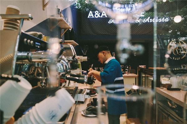 A barista makes coffee at A&A Coffee in Shanghai. [Photo provided to China Daily] |