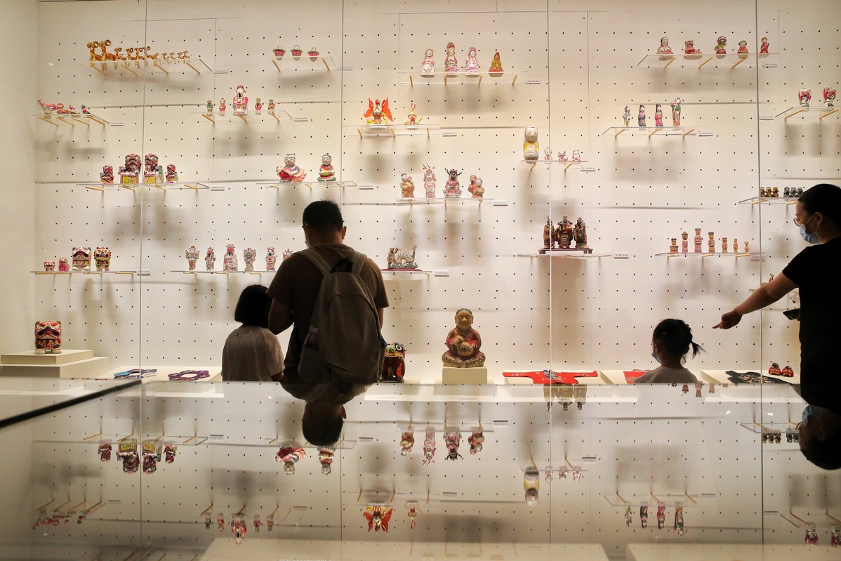 Evoking Nostalgia, an exhibition now on at the National Museum of China in Beijing, brings together hundreds of objects representing Shandong's diverse folk arts and dynamic creativity of handicrafts. [Photo by Jiang Dong/China Daily]