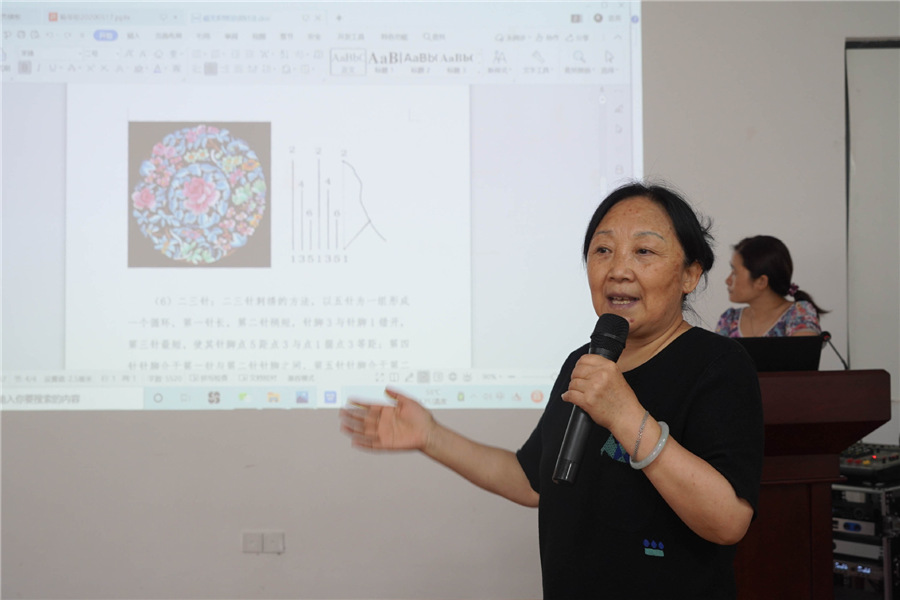 Yang holds embroidery seminars at her studio in Chengdu, Southwest China's Sichuan province, on July 23, 2020. [Photo/Xinhua]