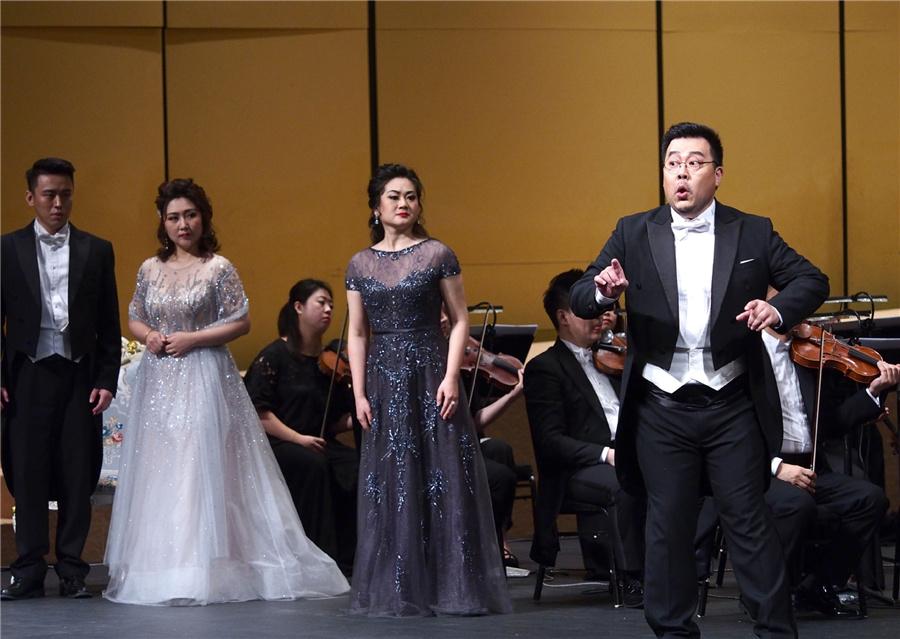 Artists and musicians perform the Mozart classic, Don Giovanni, in Shanghai on July 24, 2020. [Photo/Xinhua]