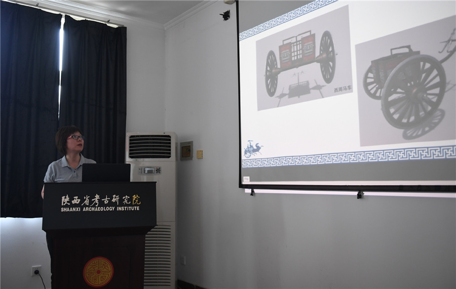 A carriage relic dating back to the Western Zhou Dynasty (c.11th century-771 BC) is restored by archeologists in Xi'an, Northwest China's Shaanxi province, on July 30, 2020. [Photo/Xinhua]