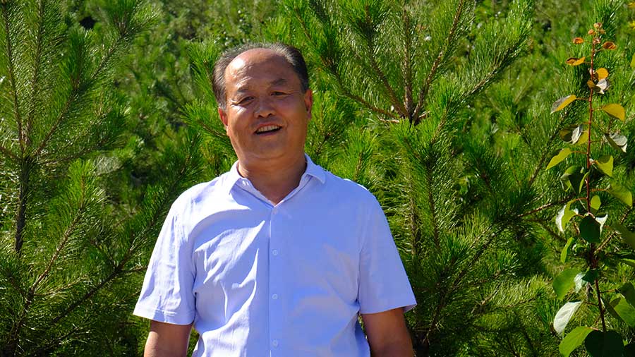 Zhang Junping stands among the cypress trees at Yuquan Mountain Forest Park on July 19, 2020. [Photo by Yang Xiaoyu/chinadaily.com.cn] |