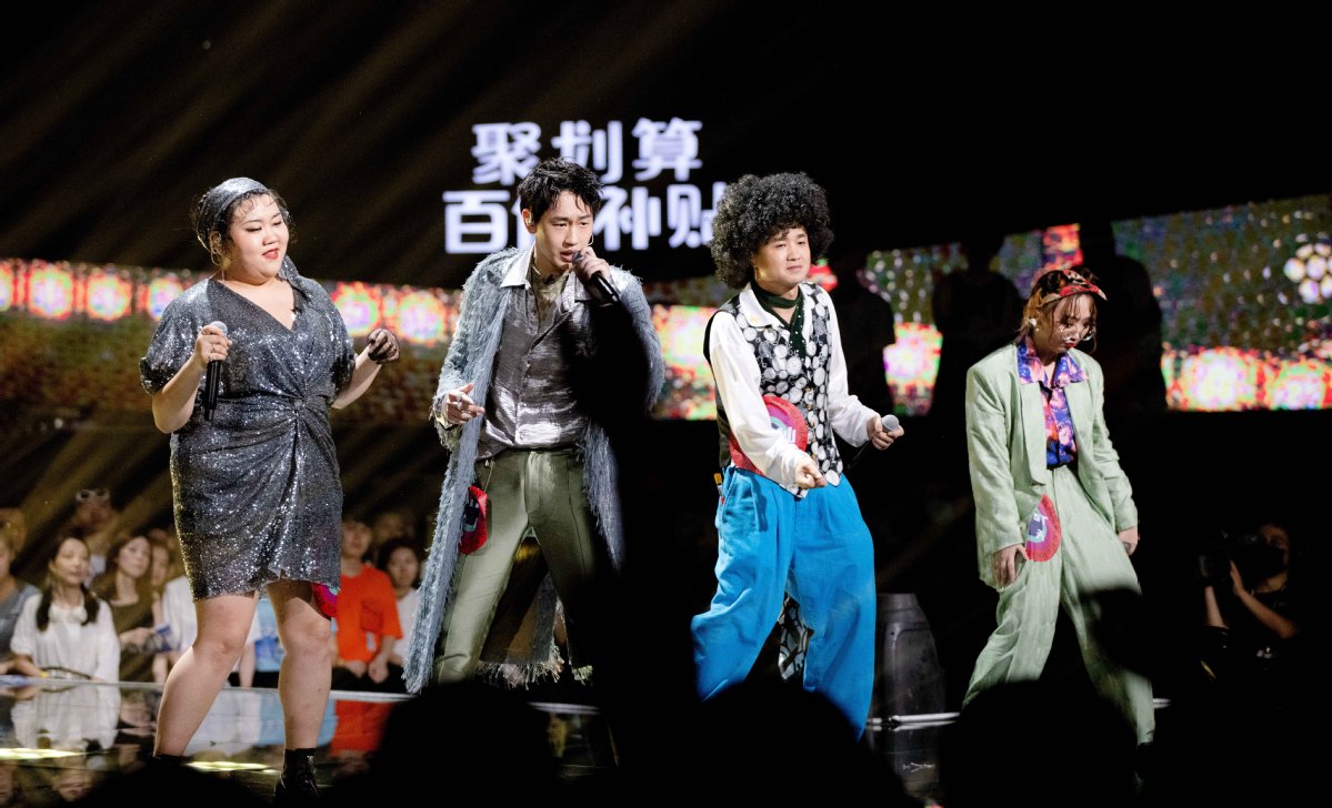 Rapper Chen Jinnan (left)and competitors perform on the reality show Rap for Youth. Photo provided to China Daily |