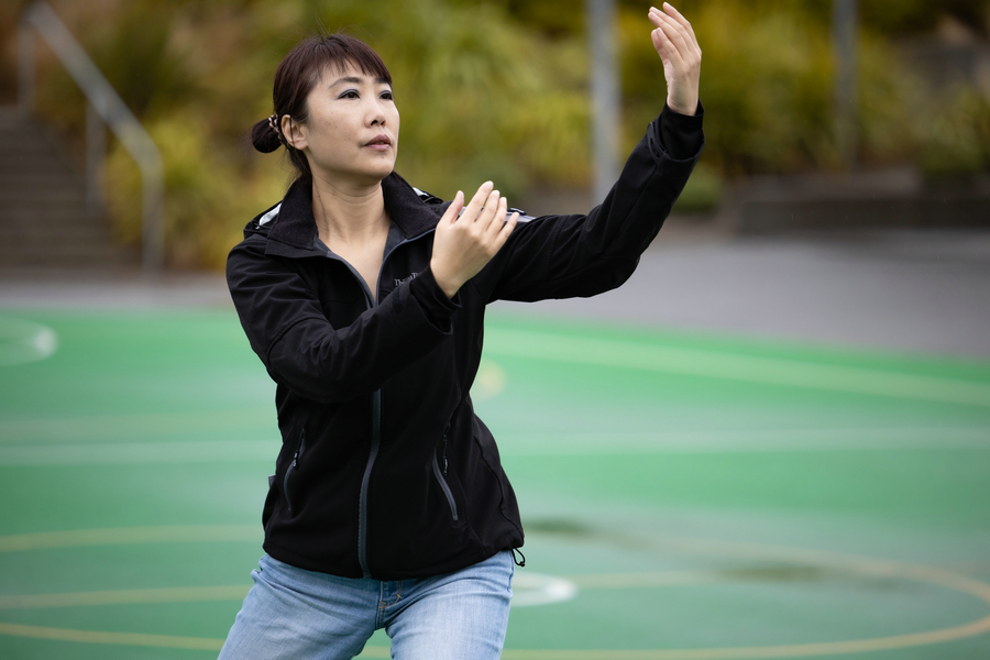 About 20 people demonstrate tai chi on the street in Queenstown, New Zealand on Oct 7, 2020. [Photo provided to Chinaculture.org]