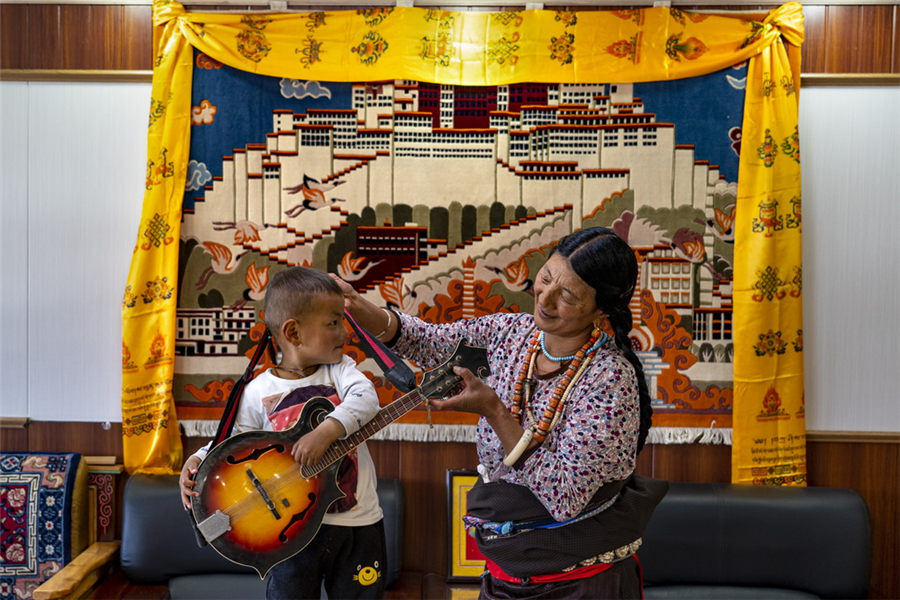A family in Gaxiuxin village, Gannan Tibet autonomous prefecture of Gansu province, attaches great importance to cultivate children's artistic culture. [Photo by Li Fan/cpanet.org.cn]